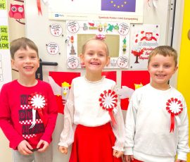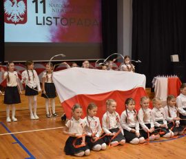 Jednym z najważniejszych wydarzeń tego tygodnia był udział dzieci w uroczystości z okazji Narodowego Święta Niepodległości – 11 listopada. Uczniowie z dumą odśpiewali hymn państwowy, wysłuchali pieśni patriotycznych, zatańczyli taniec oraz z wielkim skupieniem obejrzeli przygotowany montaż słowno-muzyczny.