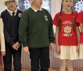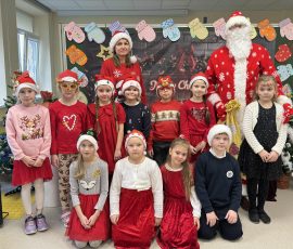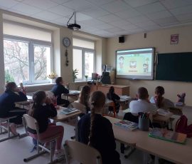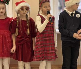 Następnie wystąpili uczniowie klas początkowych. Klasa 1 przedstawiła „Zabawę piratów”, klasa 2 zaprezentowała „Igraszki elfów”, klasa 3 wystąpiła z utworami „Szóstka – oszustka” Jana Brzechwy oraz „Ptasie radio” Juliana Tuwima, a klasa 4 zarecytowała wiersze „W pogoni za kwadratem” Marii Terlikowskiej oraz „Lis i kozioł” Adama Mickiewicza. Uczniów do występu przygotowała Elwira Ajauskaitė.
