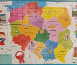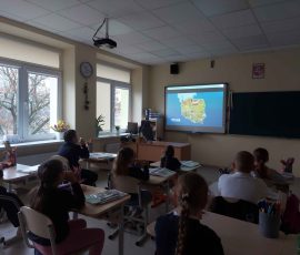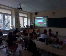Podczas zajęć zatytułowanych „Wędrówka po mapie Polski” uczniowie poznawali największe miasta, rzeki, góry i jeziora, a także miejsca ważne dla historii kraju. Z zainteresowaniem wyszukiwali Kraków, Warszawę czy Gdańsk, a przy okazji utrwalali polskie słownictwo.