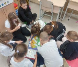 Lekcja integrowana – to jedna z najlepszych form wymiany doświadczeń oraz współpracy, która daje również wiele korzyści dla uczniów. Jest to pewien sposób eksperymentowania w nauczaniu i twórczego podejścia do lekcji. Otwarte integrowane lekcje języków polskiego i angielskiego, które poprowadziły nauczycielki Olga Wołkowicka oraz Grażyna Czereszniowaja, miała klasa 5 naszego gimnazjum. W ramach cyklu lekcji uczniowie pochylili się nad fragmentami powieści F. H. Burnett „Tajemniczy ogród”, pracując z tekstem oryginalnym oraz tłumaczeniem na język polski. Temat lekcji brzmiał: Siła przyjaźni. Pracując w grupach uczniowie dokonali analizy stosunków bohaterów tekstu, wzbogacili słownictwo określające osobowość w obu językach, pracowali metodą book in a box i stworzyli w pudełkach własną wizję tajemniczego ogrodu, opowiadali, współpracowali i dyskutowali. Na podsumowanie wykonali Kahoot sprawdzający wiedzę z lektury. Cykl zaś lekcji z powieścią zakończyliśmy zasadzeniem własnego „żywego ogrodu”, który rośnie na parapecie gabinetu języka polskiego. Była to dobra integracja międzyprzedmiotowa, która wzbogaciła wszystkich o nowe doświadczenia.