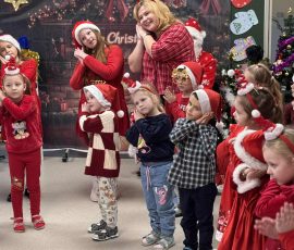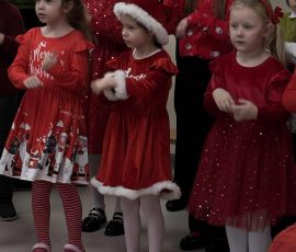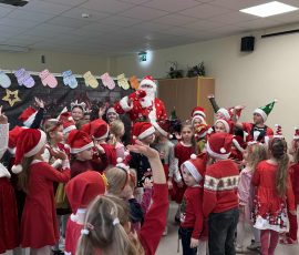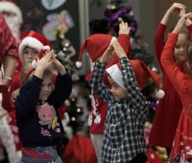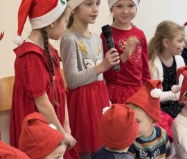 5 grudnia w Gimnazjum im. Stanisława Moniuszki w Kowalczukach odbyły się wspólne zabawy mikołajkowe z udziałem przedszkolaków z miejscowej placówki, uczniów grupy przygotowawczej oraz uczniów klas początkowych naszego gimnazjum. Dzieci zaprezentowały niezwykle bogaty i pełen uroku program artystyczny – z zaangażowaniem deklamowały wiersze, śpiewały nastrojowe zimowe piosenki i kolędy, a także przedstawiły starannie przygotowane układy taneczne.